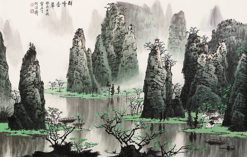 5. **点染收拾**:点上苔点,用淡墨渲染暗部,统一整体色调。最后审视全局,对不够精神的地方进行提亮(用浓墨或白粉),对过于跳脱的地方进行压暗或虚化,完成作品。