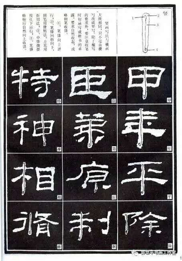 横画是隶书中最基本的笔画,是从篆书中继承而来,藏头裹尾、平中寓曲。要写得充实稳健、果断利落、粗细均匀。藏锋逆入,忌顿头;圆笔用转法调整笔锋,方笔以折法调整笔锋;中锋提按,宜稳实;回锋书笔,须自然。