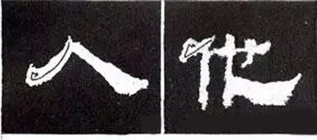 或露锋或藏锋起笔,向左下顿挫运行,回锋收笔,书写时要做到短促有力。