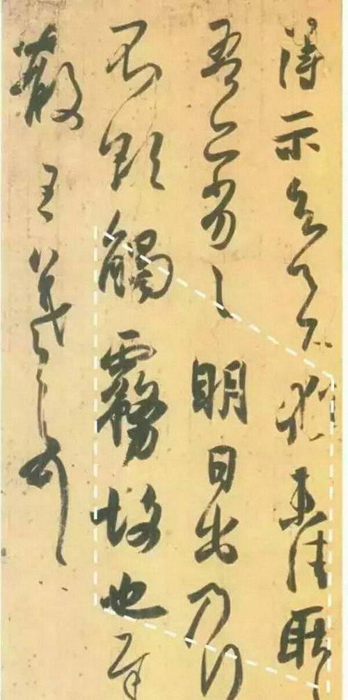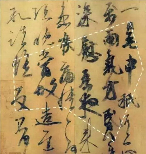 一般来说,字距疏松的地方、笔画轻的地方、笔画用墨比较淡的地方、比较枯的地方,容易产生“虚”的感觉;相反,字距紧密的地方、笔画重的地方、用墨浓的地方、用墨润的地方,在视觉上,会容易产生“实”的感觉。下面找一些作品,做一些尝试性、粗线条的分析。