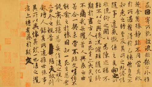 历代书家在继承传统的同时,不断提出新的命题、新的概念,不断开辟新的审美境界。宋代书法以“开新”为旗帜,如苏轼所说,“我书意造本无法”,然而却包孕着继承的内核;元代书法以“复古”为号召,骨子里却体现了创新的精神。创新而不离继承,继承更为了创新,继承和创新的高度结合,正是书法传统的精髓所在。