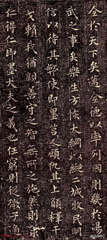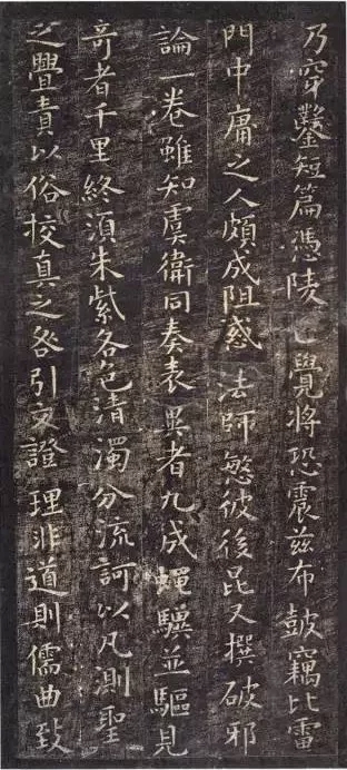 《破邪论序》为虞世南小楷代表之作。用笔丰润圆融,方圆兼备,柔中有刚,以韵取胜。尤其值得一提的是,该碑在章法上形成了行距宽于字距的布局体系,给人以心旷神怡的艺术享受。这种章法特点到了五代杨凝式、宋代林逋那里越发夸张,一股萧散之气扑面而来,旷淡之情改变了有唐以来楷书章法森严茂密的气氛。
