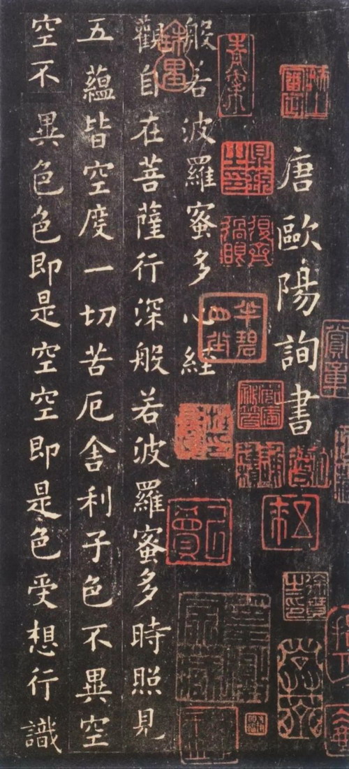 《心经》是欧阳询小楷代表作,用笔犀利,刚柔相济,字字严整端庄,理法兼备。