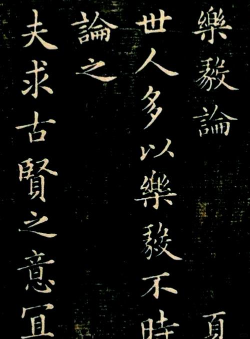 《乐毅论》基本摆脱了隶书的痕迹,具备了完备的楷书法则。用笔沉着内敛,扎实劲健;点的姿态生动,细腻圆润。在整体风格上呈现出端庄沉着、圆润峻拔、动静有致的中和之美、雍容之美。