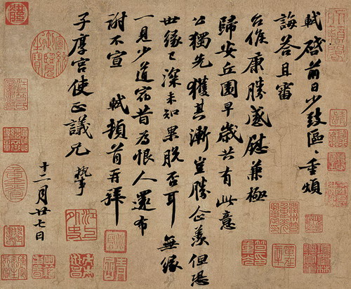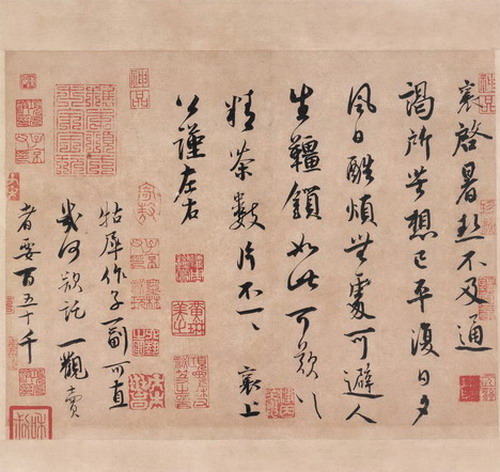 米芾(1051—1107),字元章,号襄阳漫士等。祖居太原,后迁襄阳,定居润州。宣和年间,迁礼部员外郎,人称"米南宫"。能诗文,擅书画,精鉴别,好收藏,书得王献之笔意,书迹传世甚多。