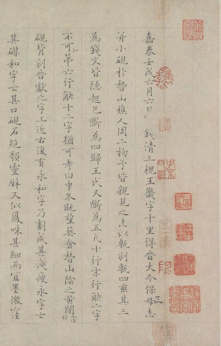 姜夔的书法作品极为罕见,《跋王献之保母帖》为其代表作。全文楷法谨严,又具潇洒秀雅之态。