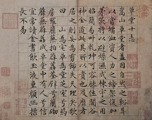 文徵明(1470—1559),名璧,字文明,号衡山居土,明代著名书画家。在书法方面与祝允明、王宠并称"吴中三家"。文徵明在书法史上以兼善诸体闻名,尤擅长行书和小楷。其小楷笔颖清丽,节奏冲和,结体矫健,与其画风谐和。相传他80岁仍写蝇头小楷,后世称其小楷"有明第一",传世小楷作品很多,有《离骚经》《老子列传》《前后赤壁赋》《出师表》《草堂十志》《千字文》等。