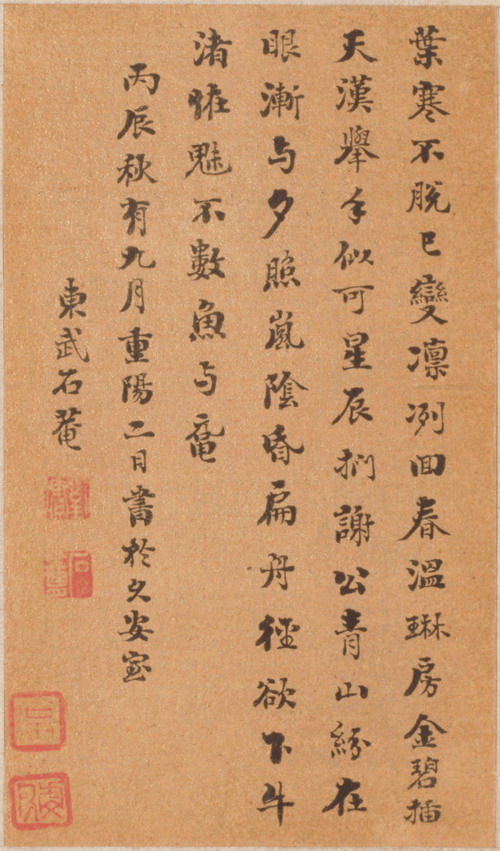 此册为刘墉78岁时所书。书法朴实沉厚,结体圆整,不难看出刘墉晚年书法吸收了北碑的某些特点,在原来圆润遒媚的书法风格中融入方硬刚健的笔法。此册可以代表刘墉晚年小楷的艺术水平。