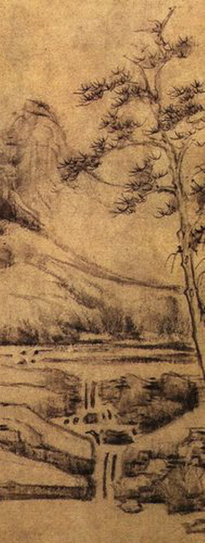 《幽涧寒松图》作于1374年,画中款识小楷极为精彩,笔力清劲,简略冲淡,字的用笔极随意,有大有小,游弋于法度之外。通篇严谨蕴藉、端庄稳重,显示出作者旷逸清淡的情怀,同时又与幽涧寒松的画境相得益彰。