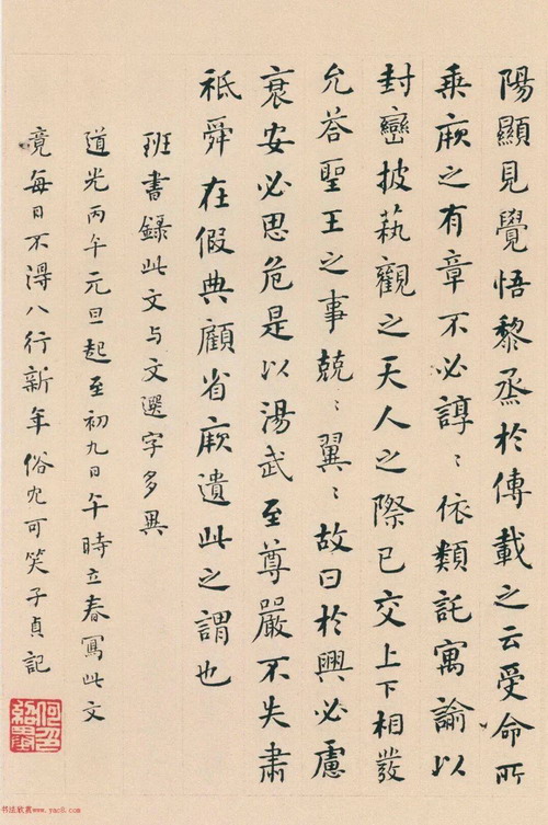 此小楷《封禅书》用笔法度灌严,藏头护尾,笔笔沉纸,但又灵动潇洒,质朴中含劲秀,绝无馆阁气。