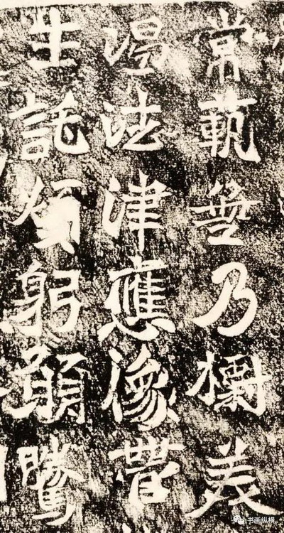 此碑应是方笔露锋之典型代表,因此最显见用笔之妙。起笔都将锋颖露在画外,有的角棱若刀,有的细锋引入,煞有情趣;即使画也挺直有力,折笔显见方棱;收笔处,有时敛毫便止,有时放锋犀利,有时如《宝子》之上扬。
