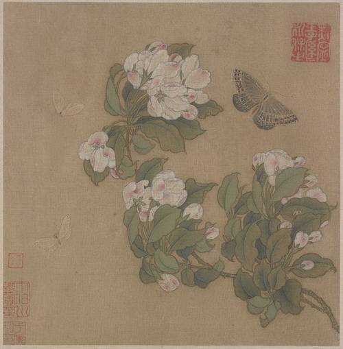 国画技法学习示范:海棠花的画法