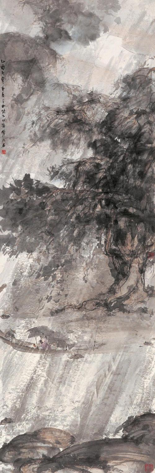 一是川地雨水繁茂,烟雾缭绕,而对流动的、湿润的氛围的表现本是传统山水画的弱项;