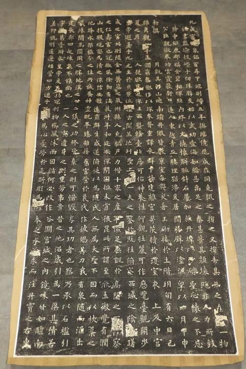 《九成宫醴泉铭》,唐代贞观六年立于陕西九成宫醴泉铭原碑宫。碑高2.7米,厚0.27米,上宽0.87米,下宽0.93米,碑料为石灰石。碑身、碑首连成一体,碑座已破损,碑首有六龙盘绕,碑身阳面碑额刻“九成宫醴泉铭”六个大字,阳文篆书。 正文24行,满行50字。楷书。碑文由魏徵撰写,欧阳询正书。