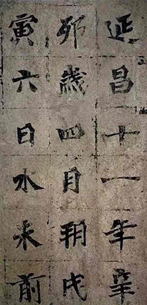 《令狐天恩墓表》砖,墨笔,纵41.6、横41、厚4.7厘米。北京故宫博物院藏。高昌延昌十 一年(北周天和六年,571年),墨书,有界格,六行四十八字。书法甚得北魏《高贞碑》筋骨,又得《马鸣寺碑》用笔取势,功力深厚无寒险气。如此妙笔神韵,于石经洞中万卷遗书也难遇见。