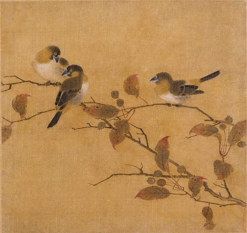宋 林椿 果熟来禽图页 绢本,设色,纵26.9cm,横27.2cm