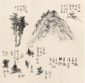 山水画中的树木画法,种类繁多,甚为丰富,有点叶、夹叶、各有数十种形象,这是古人根据对树木的观察总结出来的。
