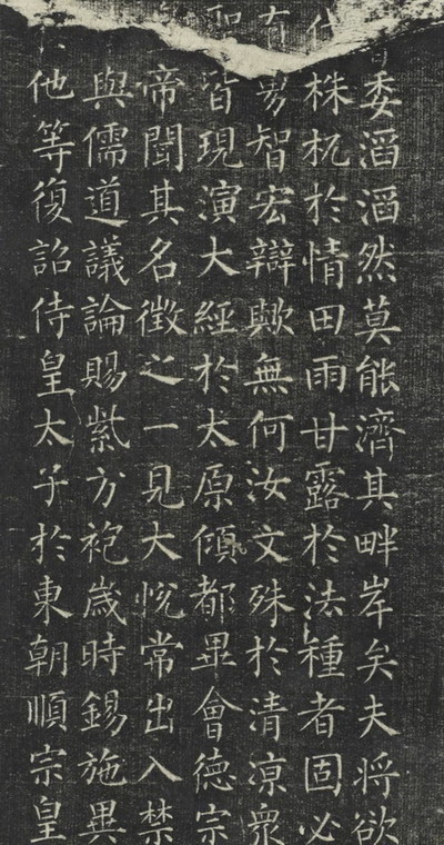 天下一景,湖南九疑。按诸古以为据,考其图而可知,龙驾不还,万世衣冠之在,马蹄所至,十分山水之奇。戴尧天而身属尧民,履舜土而心知舜事。数千年百千载之遐踪遗迹,七十二三十六之福地洞天,此则居其一也。何为渺茫。彼乃疑其九焉?见诸图志。父老常言,迄今以传。巫中黔中,属乎楚之邦,吴之境;零陵舂陵,分于秦之后,汉之前。仙踪显天皇之始载,郡名标贞观之初年。地方千里而物外胜地,天南一角而壶中有天。攀断龙髯,黄鹤莫留于仙驭,空遗虎鼎,白鸦犹养于玄田。八井俱涸,而一井涌泉。九峰齐高,而三峰压众。桂林、杞林,左右森列,石楼、石城,东西护送。有朱明、有华盖,而簇成萼绿一华,曰娥皇、曰女英、而对笑桃花一洞。下临玉琯,依希玉琯之吹鸾,上有箫韶,仿佛箫韶之来凤。古者得道,帝之有虞,浮湘江而泝潇浦。登疑领(岭)而望苍梧,洒西江之泪兮,斑斑之文竹千亩,奏南风之琴兮,戛戛之古松数株。三麓床中,丹炼九转,万岁山上,声齐一呼。所以尚书已有陟方之语,至于史记,广为考古之图。乾坤大而圣境亦宽,日月长而仙家不老。碧虚岩前,千怪万状,紫霞洞中,十洲三岛。六月无夏,惟木惟石,四时有春,非花非草。兹境为胜,异时可考。经藏石室,隐然六甲之护持,亭立仙梯,宛若五丁之开道。客难之曰:舜居蒲阪,本属乎冀之北,舜卒鸣条,不在乎夷之西。殊不知无本不立,非文孰稽。有舜江则可枕可漱,有舜坛则可攀可跻,月帔兮明月上,云阁兮白云飞。九溪源下之流派,万丈天边之石梯。鸟篆穹碑,刺史元公之笔,电文怪石,舍人李峤之题。余应之曰:百岂无于一二、十未丧其八九。紫霞高卧,前后十四辈,白日飞升,小大三百口。不然是赋也,何为而作焉。以代门下抠衣而藉手。会昌四年七月河东柳公权书邵建和镌字。