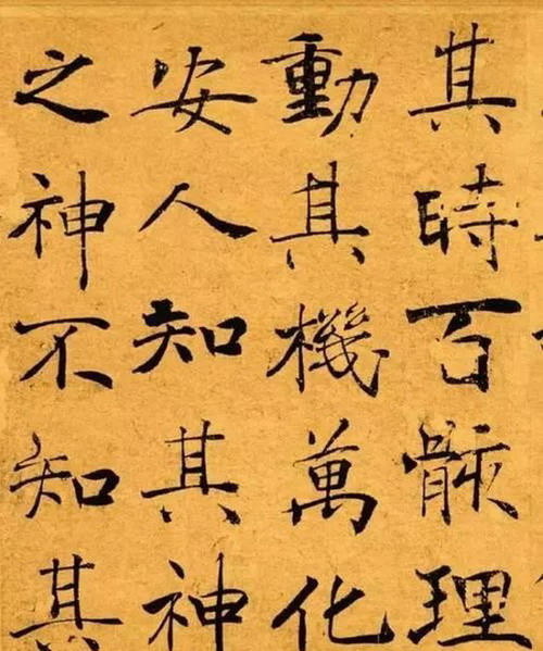 自然美贯穿于书法艺术的各个环节,是书法艺术共同美的一种表现形式, 要达到自然美的艺术境界,必须从着意入手,但着意决不是随便、马虎、不拘形态,不守法度。自然美的作品其表似淡而质朴,不事雕饰,其里却蕴藏着极大的内在美,是奇之极,是工之极,是巧之极,是美之极。王羲之的行书遒丽天成“犹夫西子毛嫱,天姿国色,不施粉黛,辉光动人矣”,这是一种出神入化的艺术境界,古人以其意不在书,一任自然,而天真罄露,所谓“不期工而自工”,故其作品往往入神,使人有意外之想。